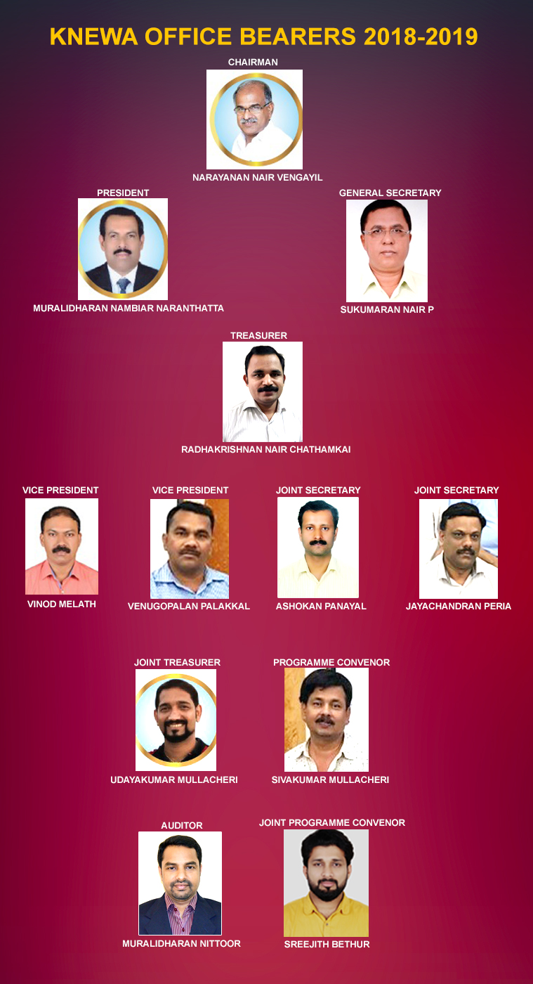| Chairman | Narayanan Nair Vengayil | chairman@knewa.org | |